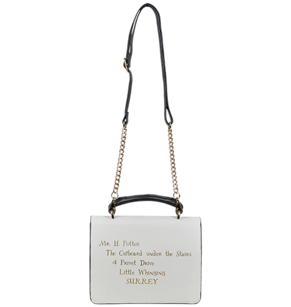 A metal burgundy clasp is fitted on the front of the bag which features a design of the Hogwarts crest. Harry Potter’s address is printed in gold lettering on the reverse, ‘Mr. H Potter, The Cupboard under the Stairs, 4 Privet Drive, Little Winging, SURREY’ which adds to the envelope design of the bag. Add this Harry Potter Letter Bag to your accessories collection today!