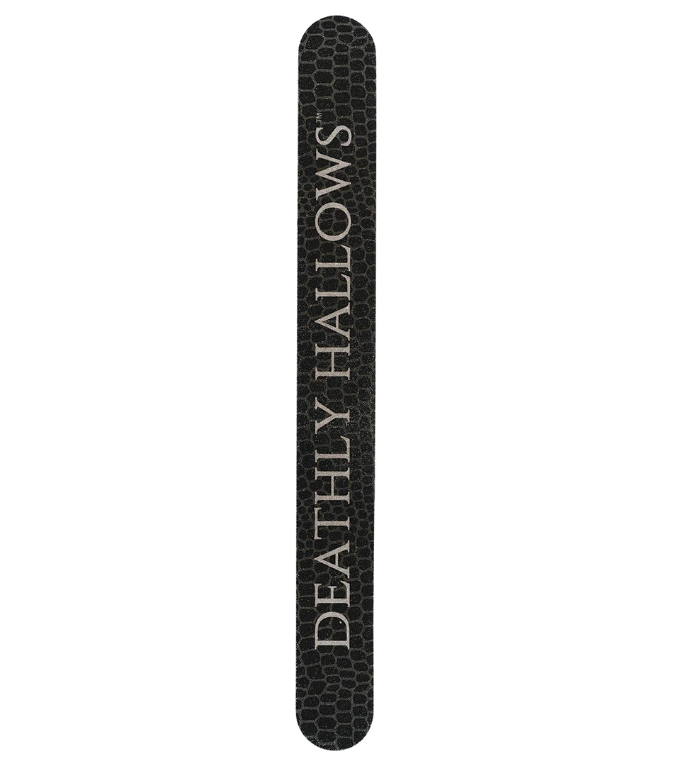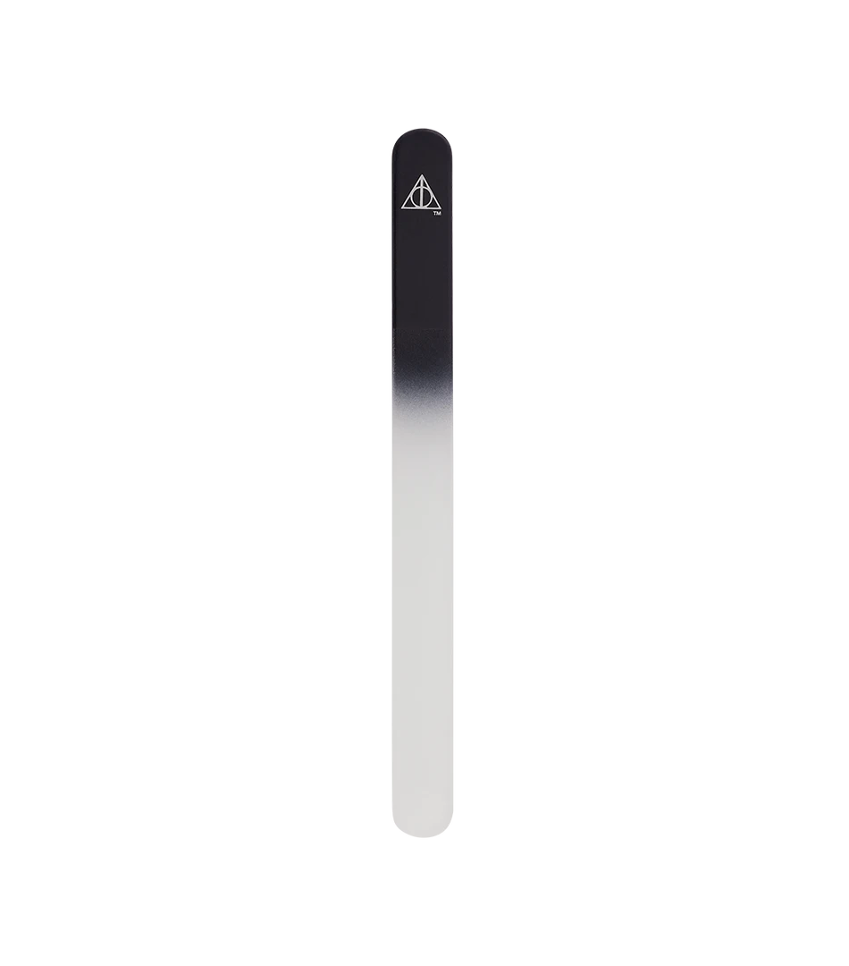 Introducing these pack of two Deathly Hallows Nail Files, ideal for smoothing and levelling nails and toenails to maintain shape and appearance. This kit includes one emery board nail file with a flexible, padded core as well as a luxurious glass file. Both files have been specifically designed to give your nails an immaculate finish for a flawless manicure. The Deathly Hallows Nail Files are suitable for both natural and artificial nails and are long-lasting to keep nails in beautiful shape. Make sure to shop our Deathly Hallows Nail Paint to complete the look! Keep away from heat.