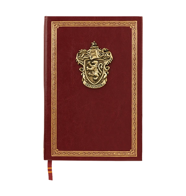 Any proud Gryffindor would be pleased to have this vintage look faux-leather notebook in their home study! This burgundy red journal features an impressive metal Gryffindor house crest on the front cover, and gold foiled detailing near the border’s edge.