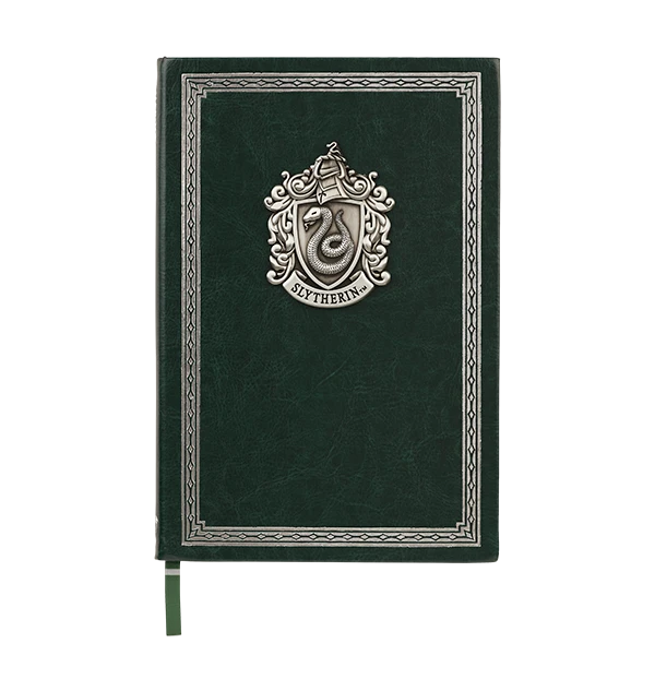 Add this handsome Slytherin notebook to your collection today! Also available in the three other Hogwarts houses, and a Hogwarts school design.