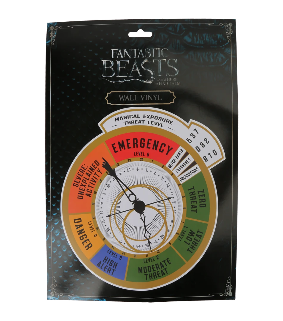 A circular wall vinyl featuring the magical exposure threat level danger metre from Fantastic Beasts and Where to Find Them.
