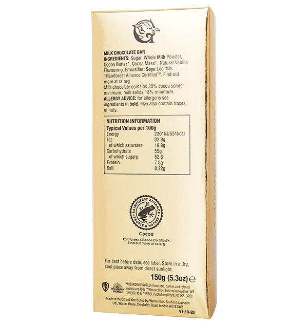 Take home this delicious milk chocolate replica of a Gringotts gold bar, just like the bar found in Gringotts Wizarding Bank as seen on screen in the Harry Potter series.
