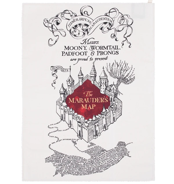 A large cloth tea-towel featuring a print of The Marauder’s Map.Â