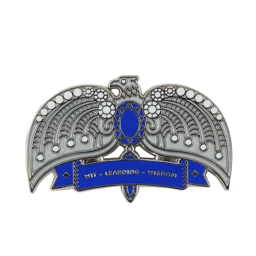 Add some Ravenclaw flair to your Harry Potter Fan Club Pin Seeking collection with this Ravenclaw’s Diadem pin. This pin features a finely detailed image of the Ravenclaw diadem above the wording “Wit, Learning, Wisdom” in a blue banner.