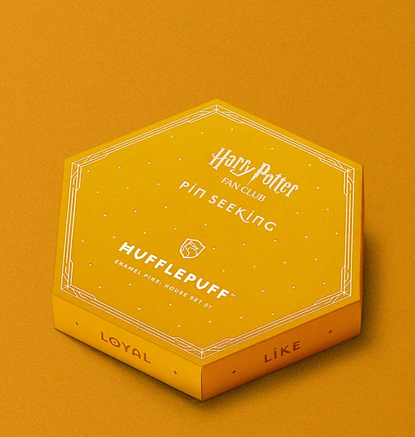 This yellow and black, 6 piece Second Edition Hufflepuff Enamel Pins Set is part of the Harry Potter Fan Club Pin Seeking collection and features a rare pin that can only be obtained as part of this set. The box is fitted with magnets so you can connect your box with other box sets as you grow your pin collection!