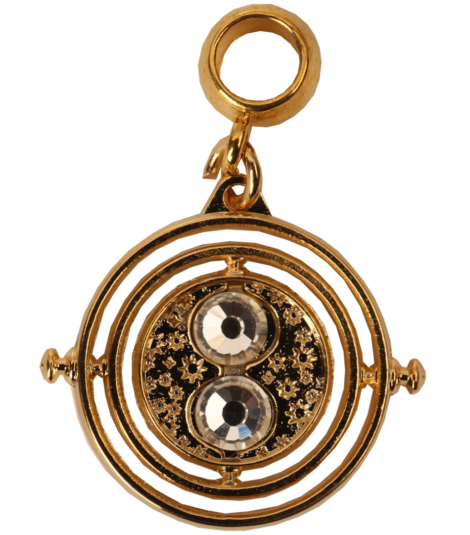 A beautiful slider charm featuring the Time-Turner. The charm features crystal details on the Time-Turner. Charm is approximately 2.5 x 2.5cm.
